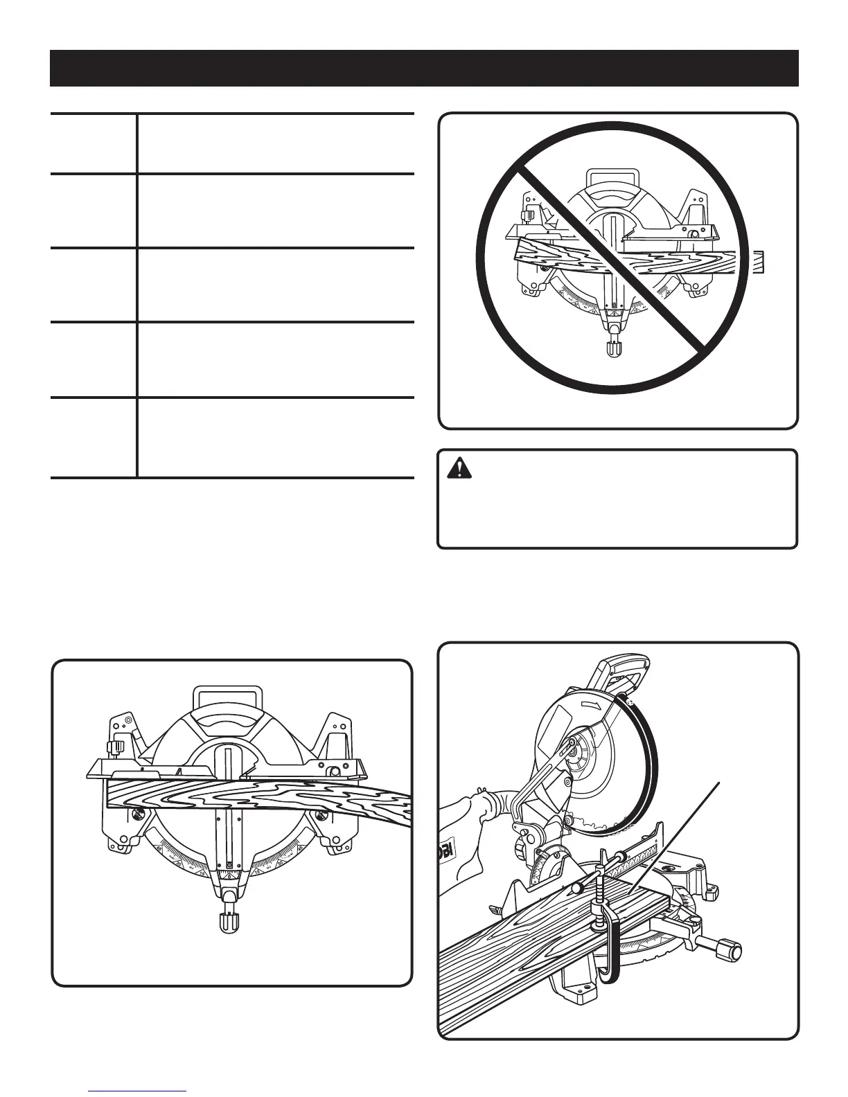 When cutting wide workpieces, such as 2 in. x 6 in., boards