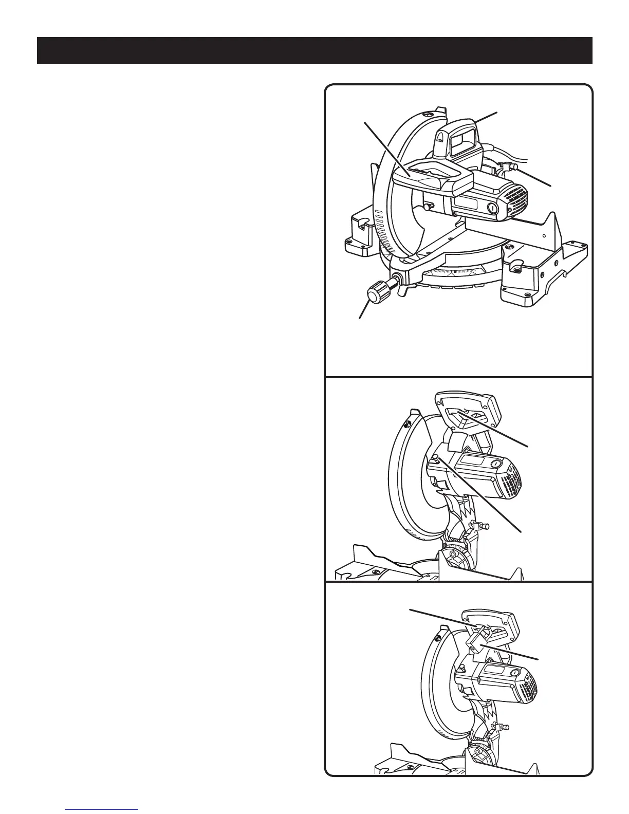 down position. Lock saw arm by depressing the lock pin.