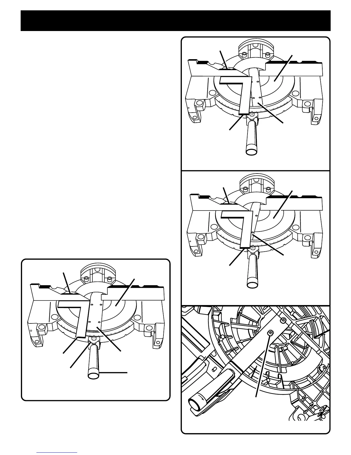 ■ Depress the miter lock plate and rotate the miter table