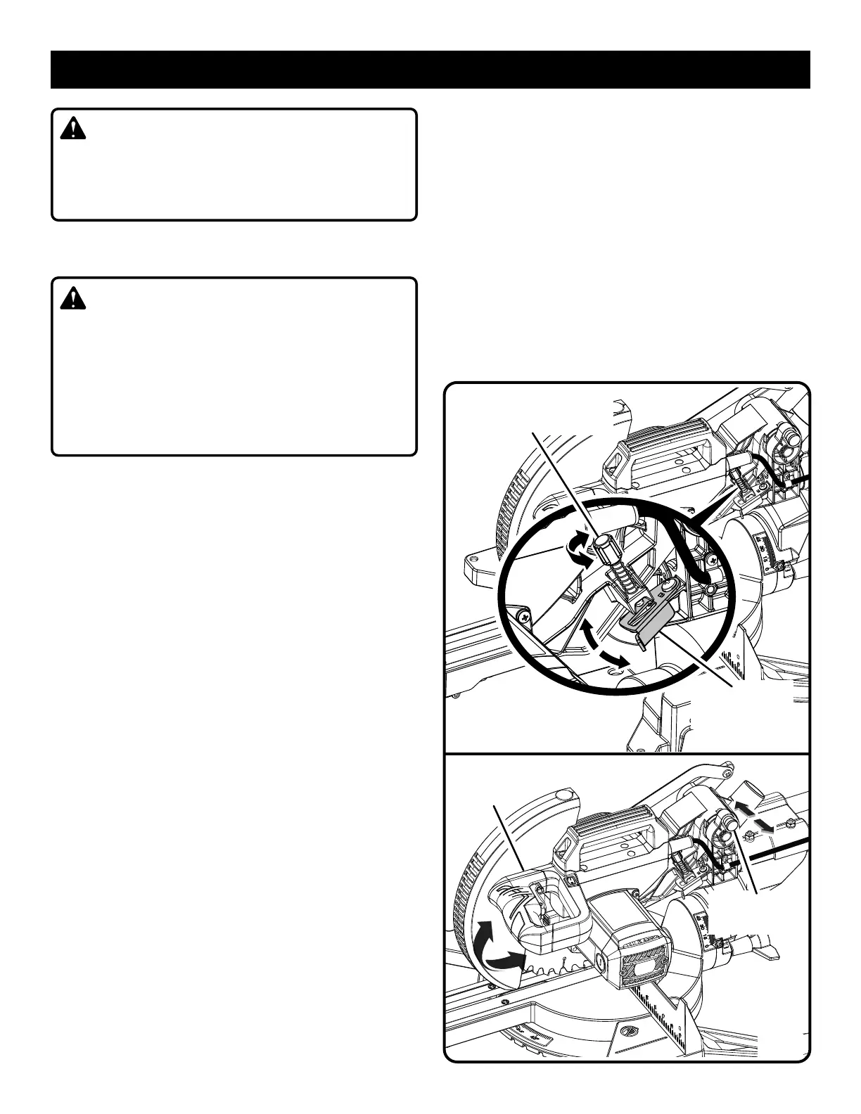 Pour déverrouiller et relever le bras de la scie :