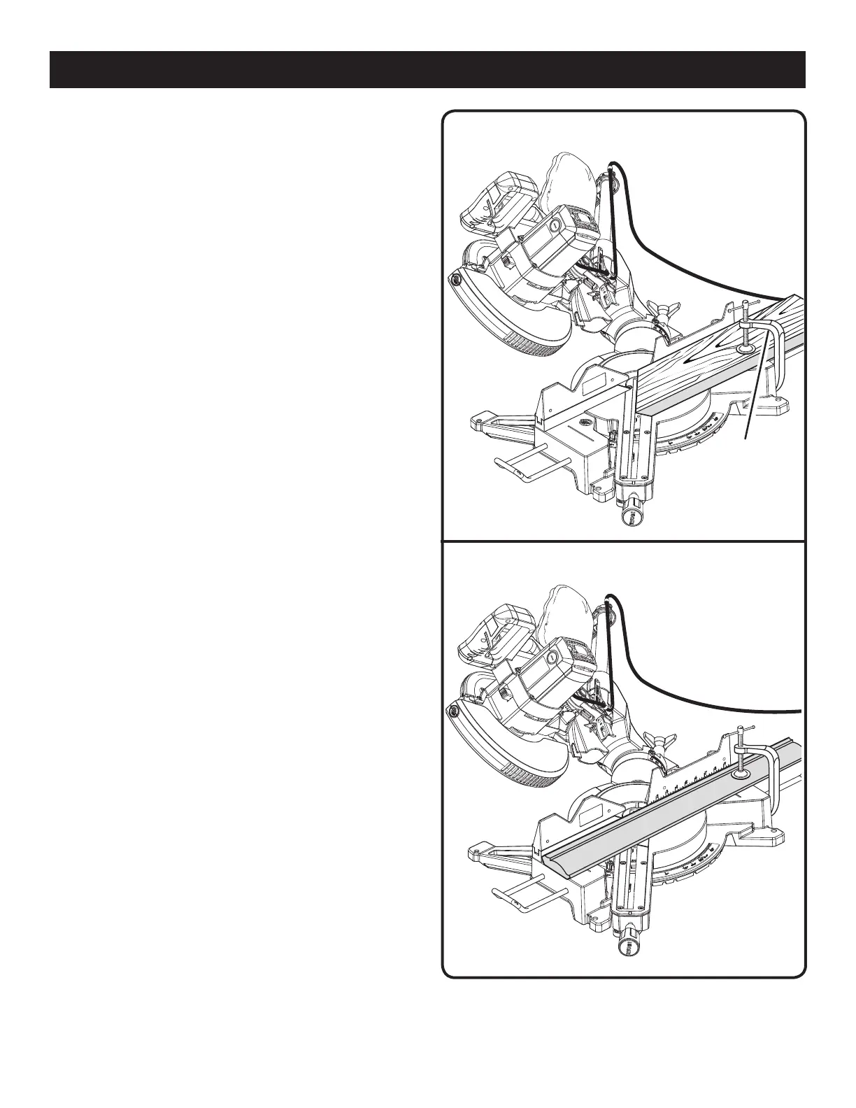 miter fence to insure proper clearance prior to making the cut.