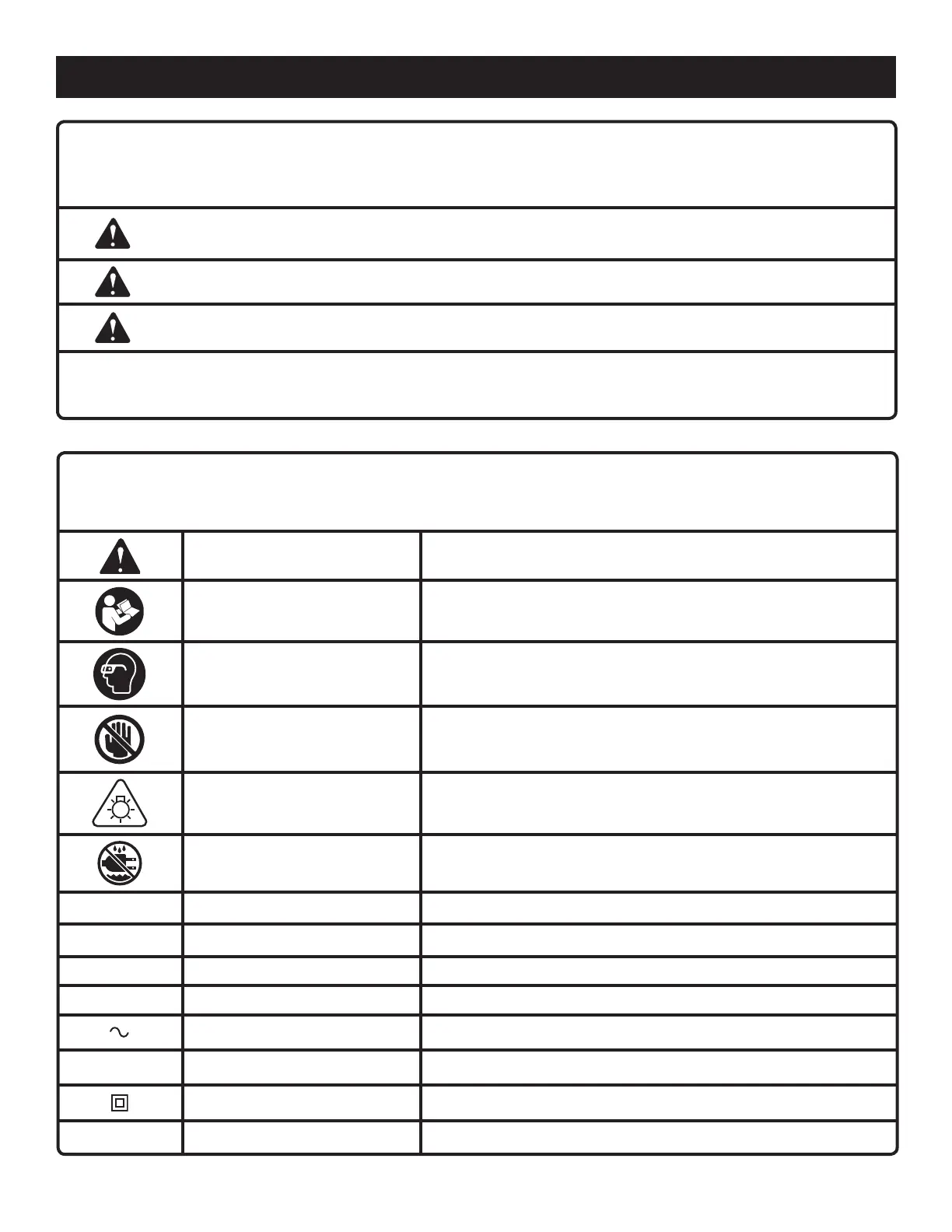 Certains des symboles ci-dessous peuvent être utilisés sur l’outil. Veiller à les étudier et à apprendre leur signification.