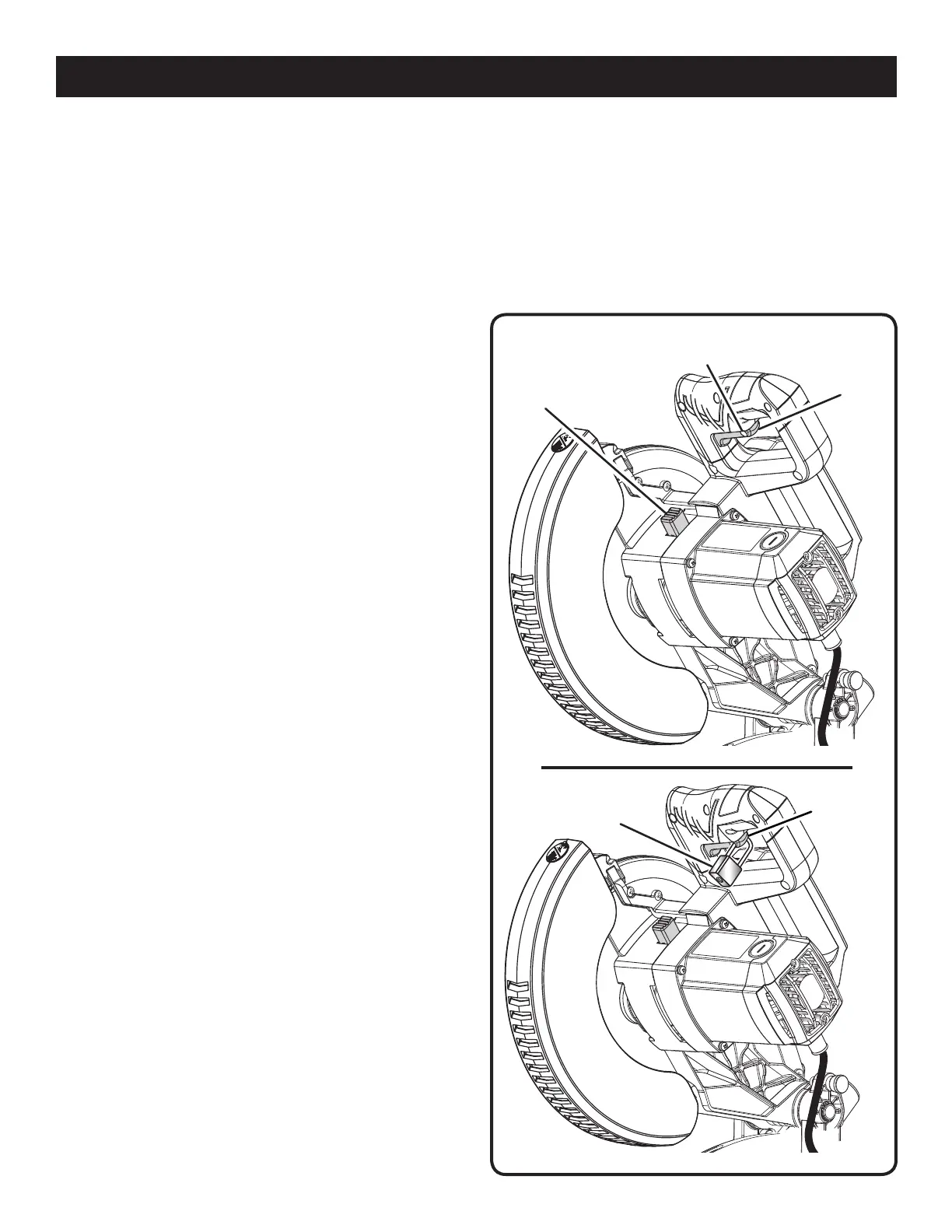blade from rotating. Depress and hold the lock button while