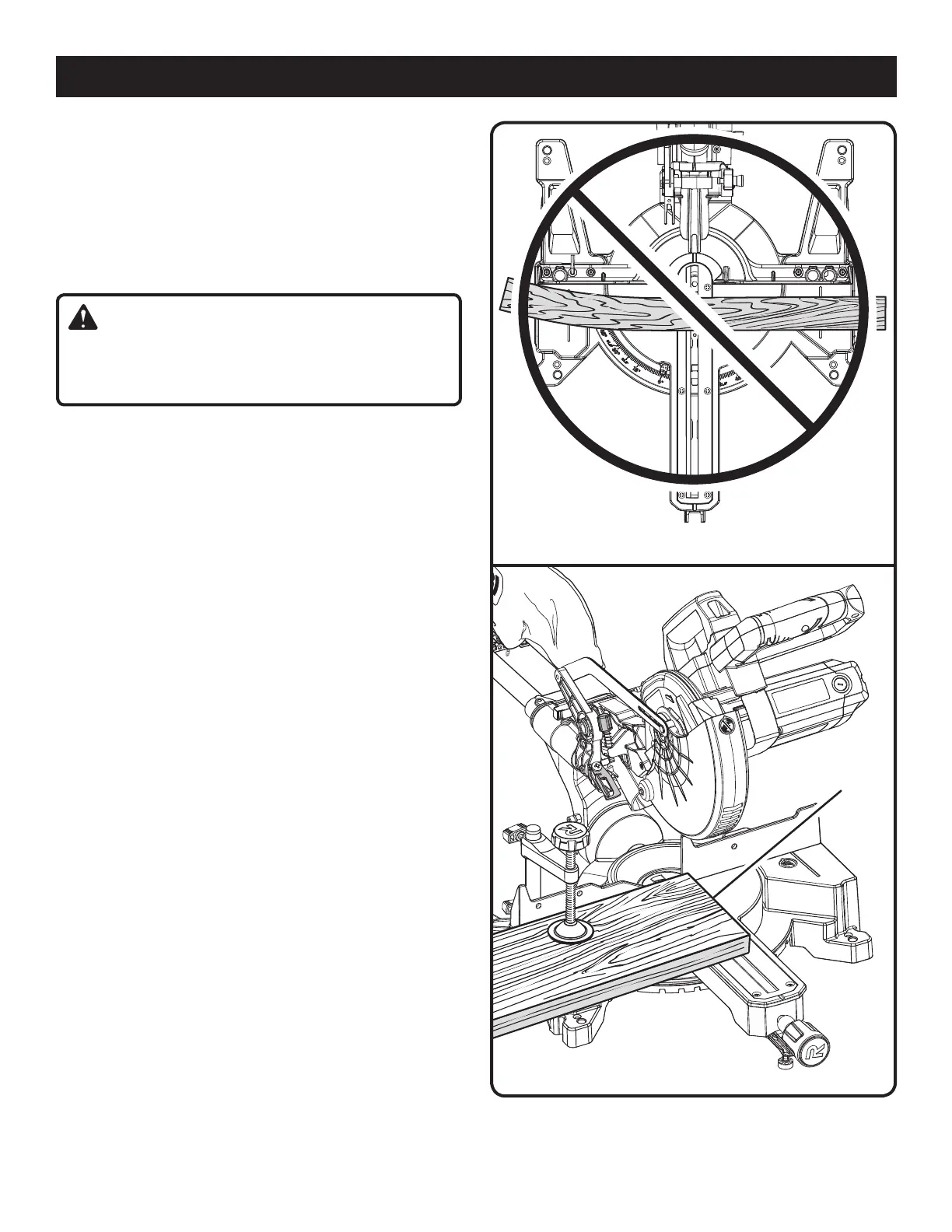When cutting wide workpieces, such as 2 in. x 6 in., boards