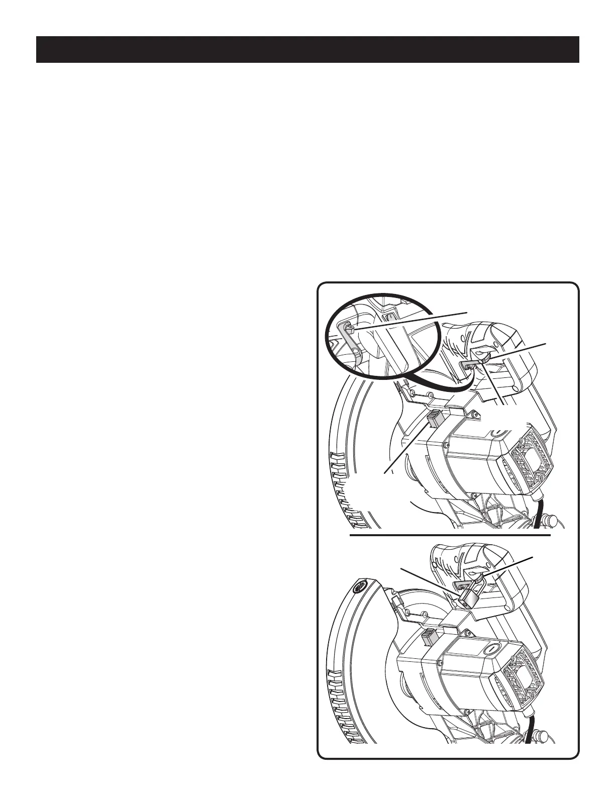 de la lame. Elle se rétracte sur la protection de lame supérieure