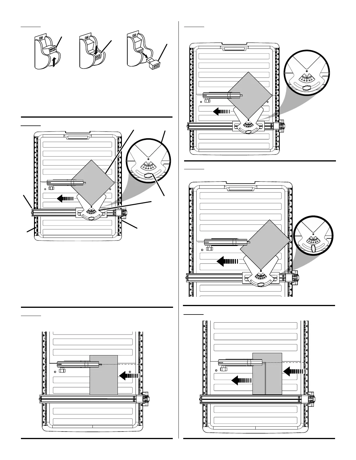 D - Miter guide scale (échelle de guide d’onglet, escala de guía de