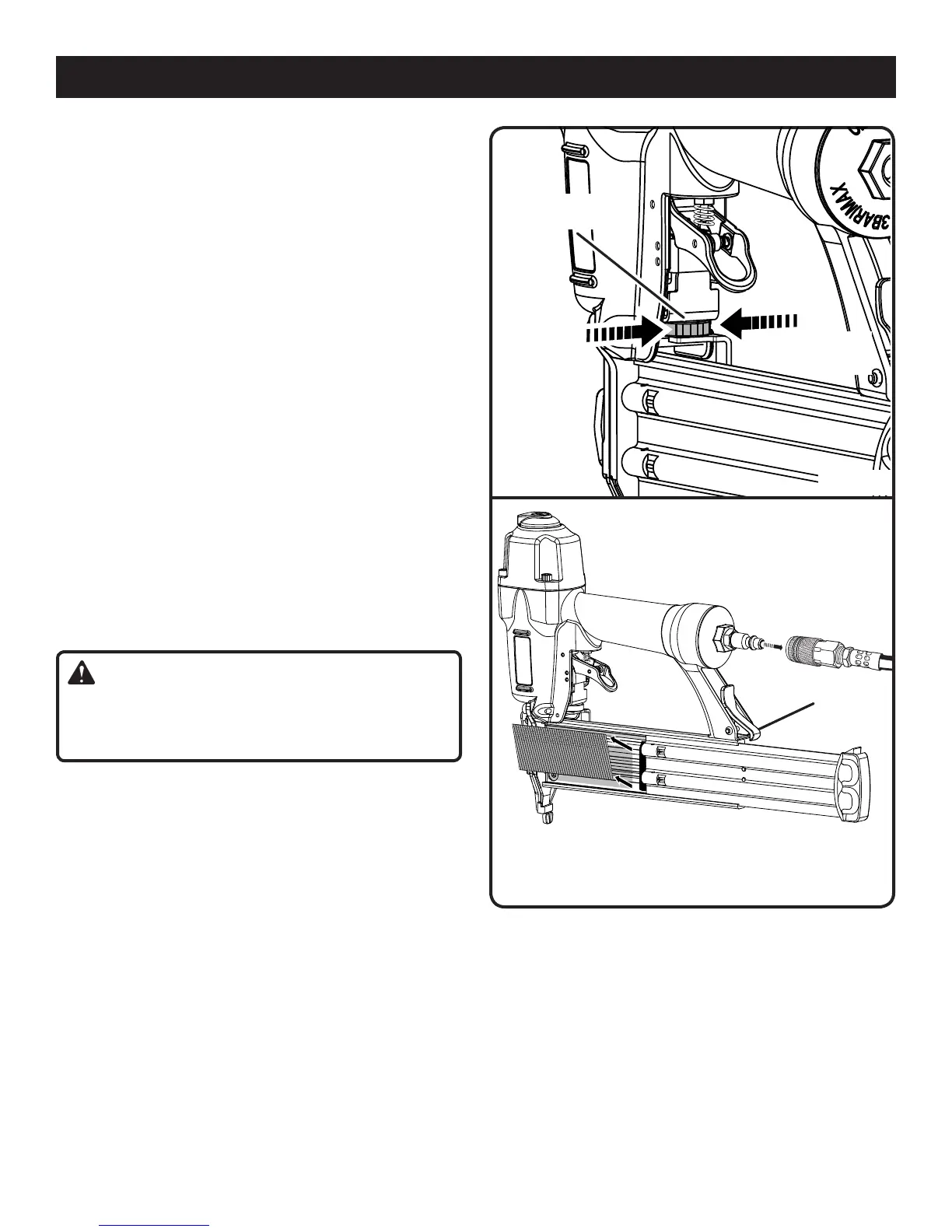 To remove a strip of nails from the tool, depress the latch