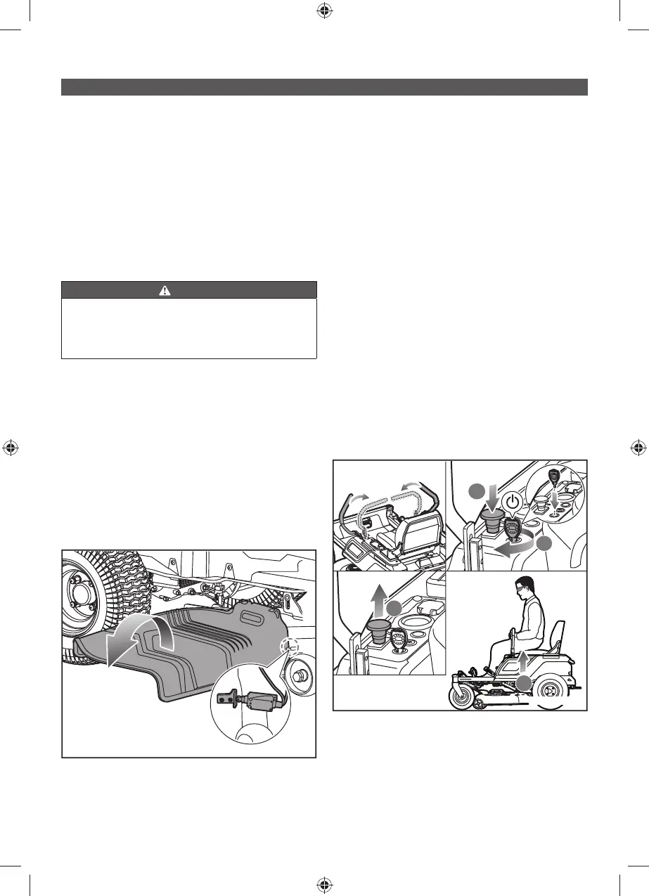om operatören lämnar gräsklipparen medan