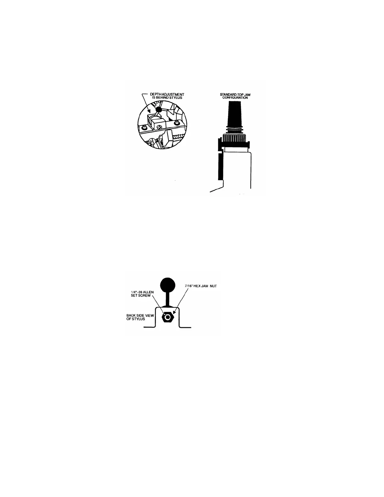 Depth is adjusted by moving the stylus forward or backward by means of a hardened, fine threaded