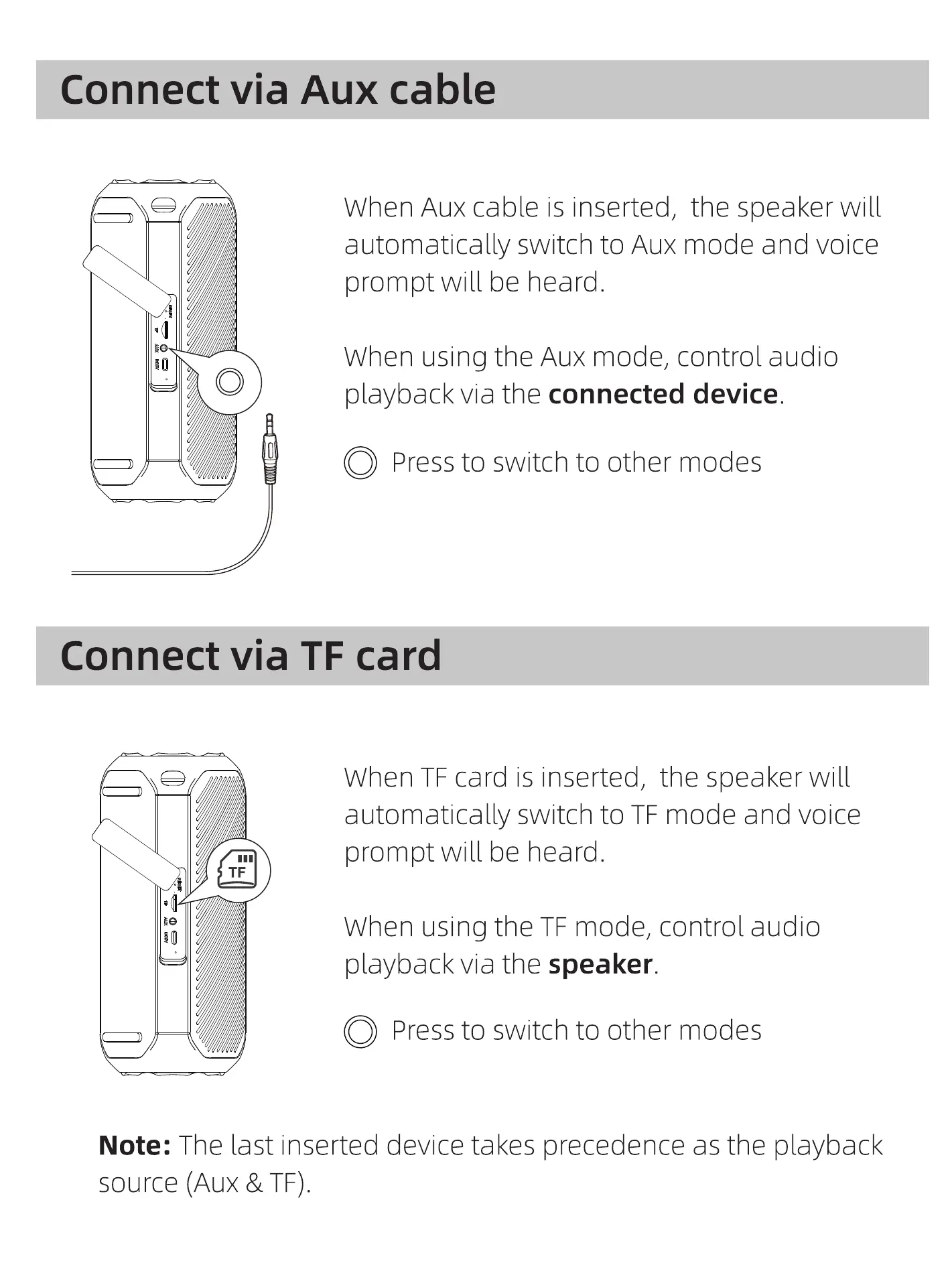 When TF card is inserted, the speaker will