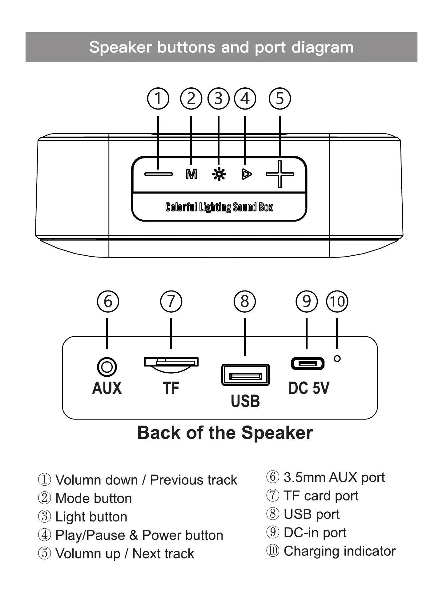 Speaker buttons and port diagram
