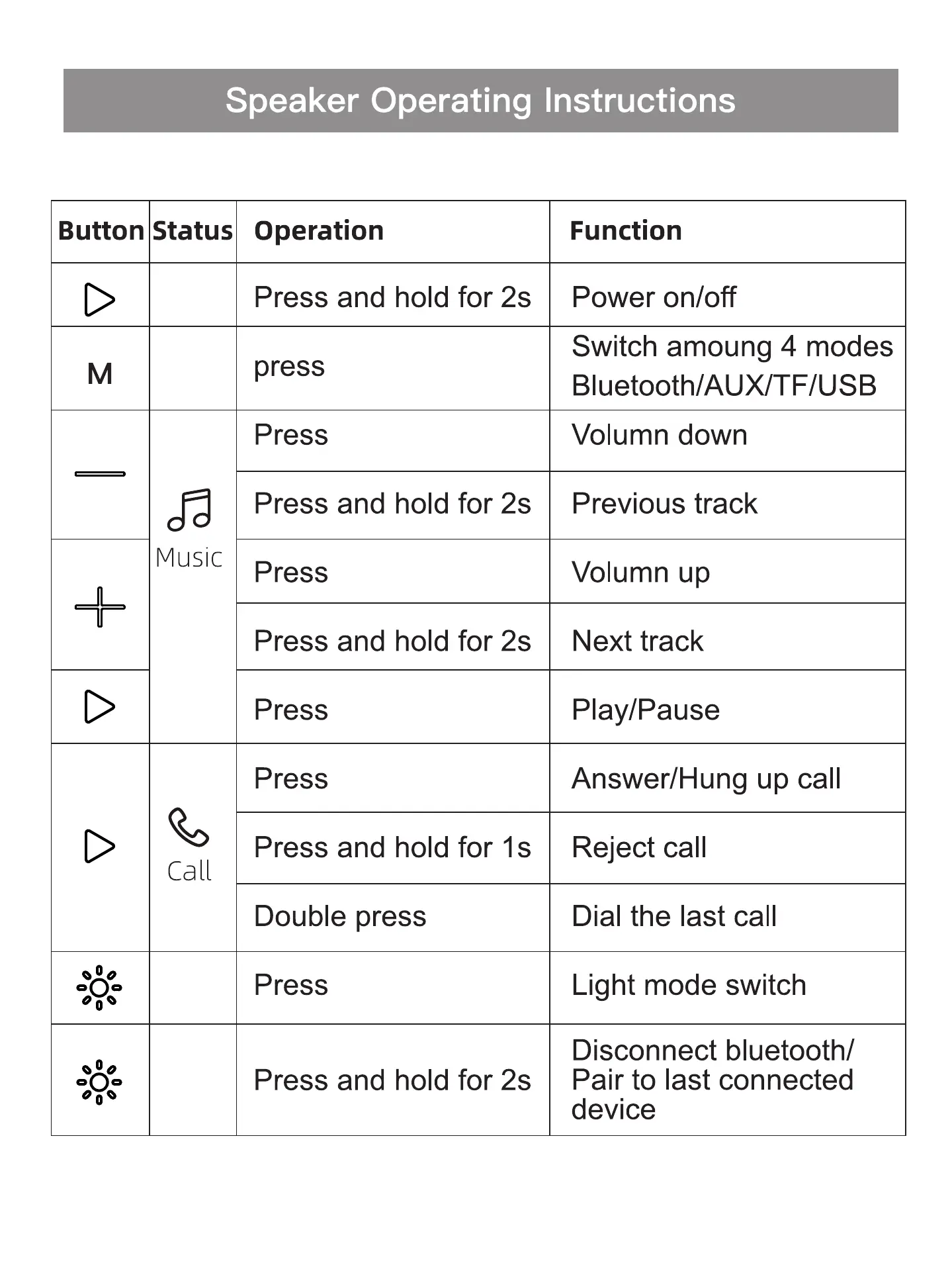 Speaker Operating Instructions