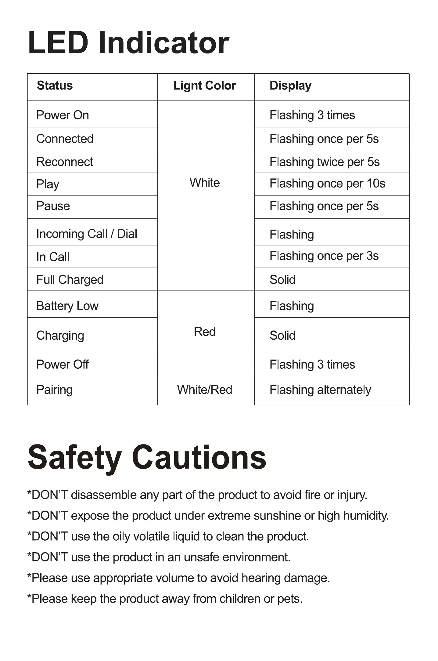 *DON'T disassemble any part of the product to avoid fire or injury.