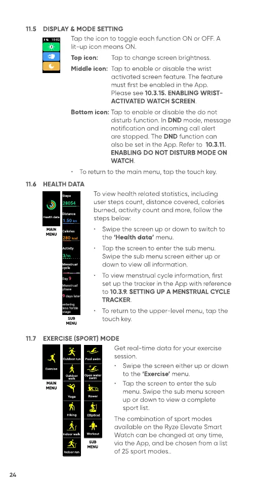 Ryze Elevate - Health Data; Exercise (Sport) Mode