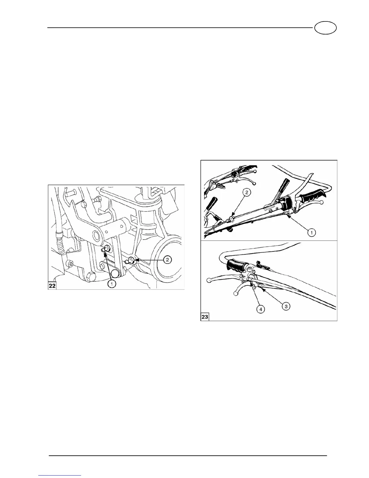 Turn cable adjusters (fig. 23, items 3 and 4) to reduce