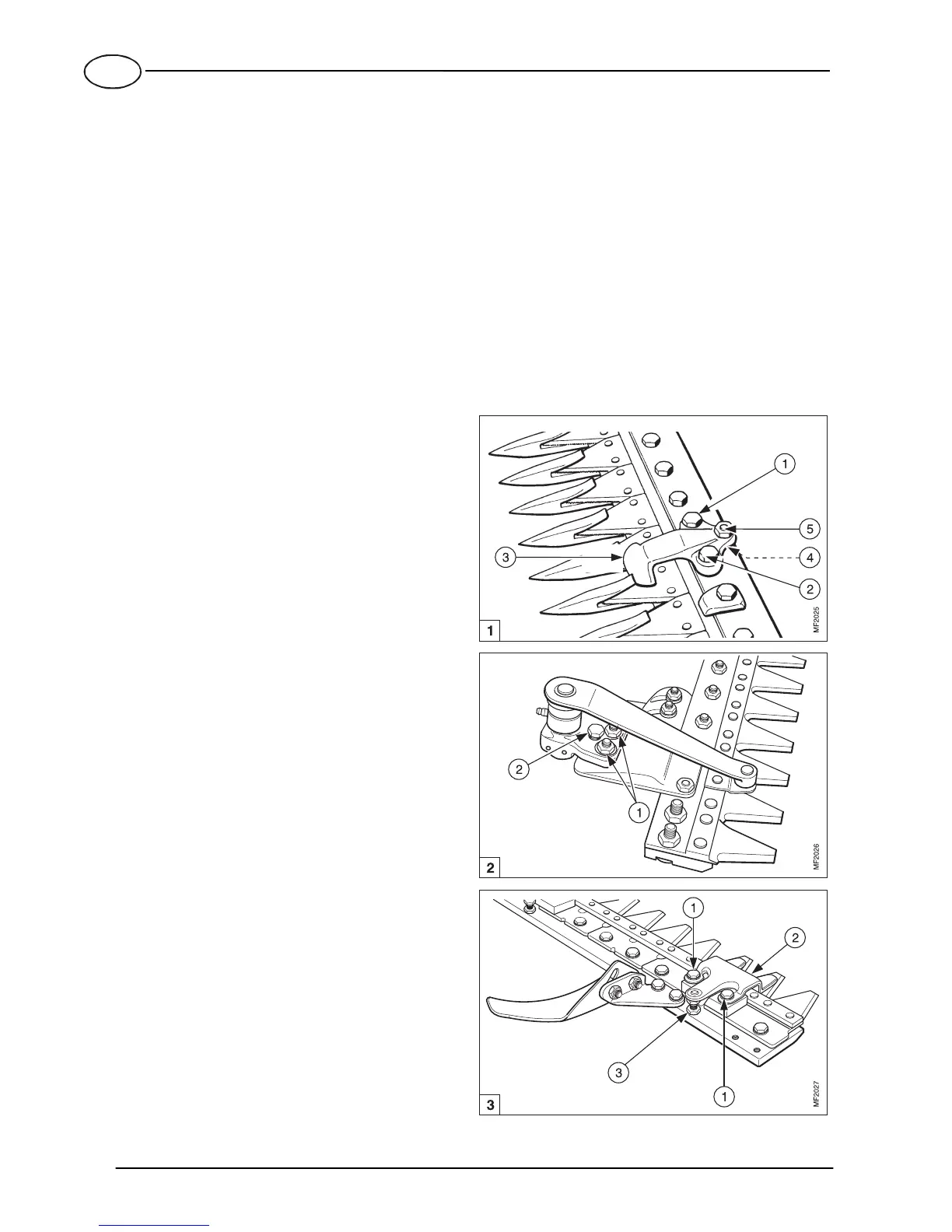 b. Turn adjuster nut (3) of each wear plate to obtain