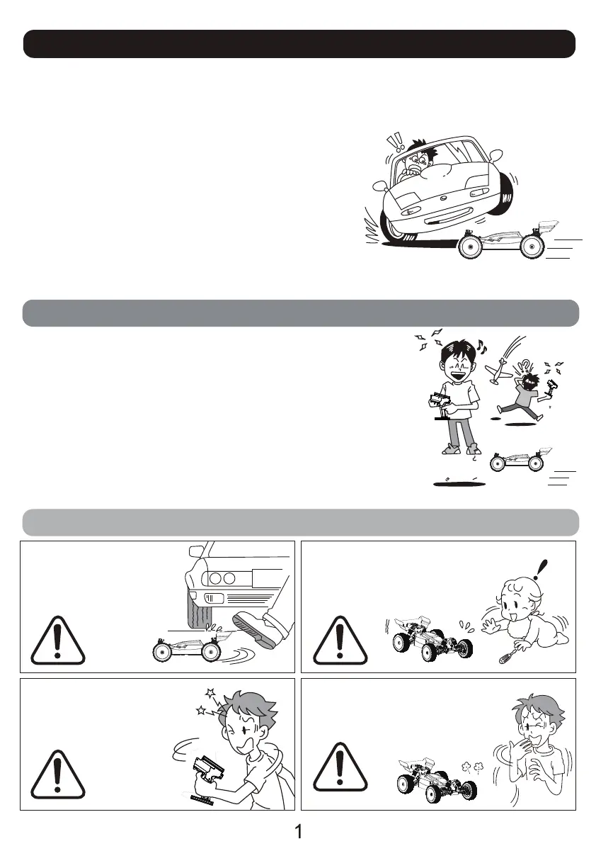 * Fahren Sie das Modell nicht auf öffentlichen Wegen oder Straßen, da dies den Verkehr beeinträchtigen kann.