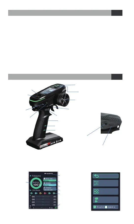 6. Tension de la batterie du modèle en temps réel, télémétrie RSSI ;