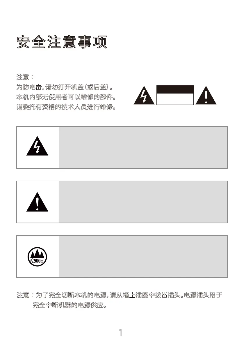 注意∶为了完全切断本机的电源请从墙上插座中拔出插头。电源插头用于