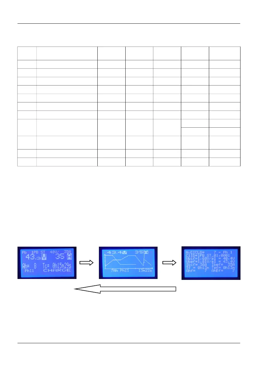 Beim Aufladen bietet das Batterieladegerät 3 Bildschirmmenüs, durch die Sie durch Betätigen des vorab ausführlich