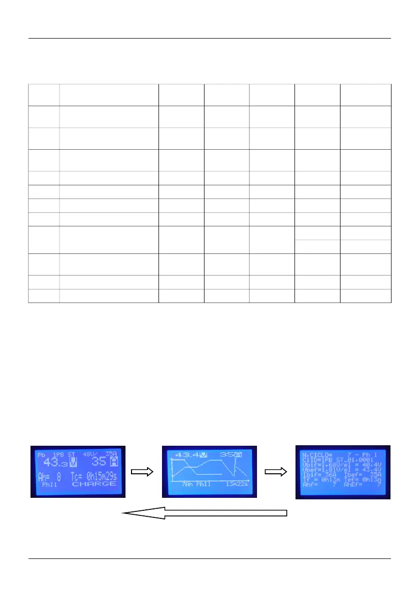 Durante la carga, el cargador muestra 3 menús en los monitores, entre los cuales el usuario puede moverse