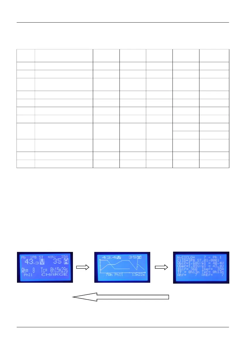 During charging, the battery charger offers 3 monitor menus, which you can move between by pressing the P2
