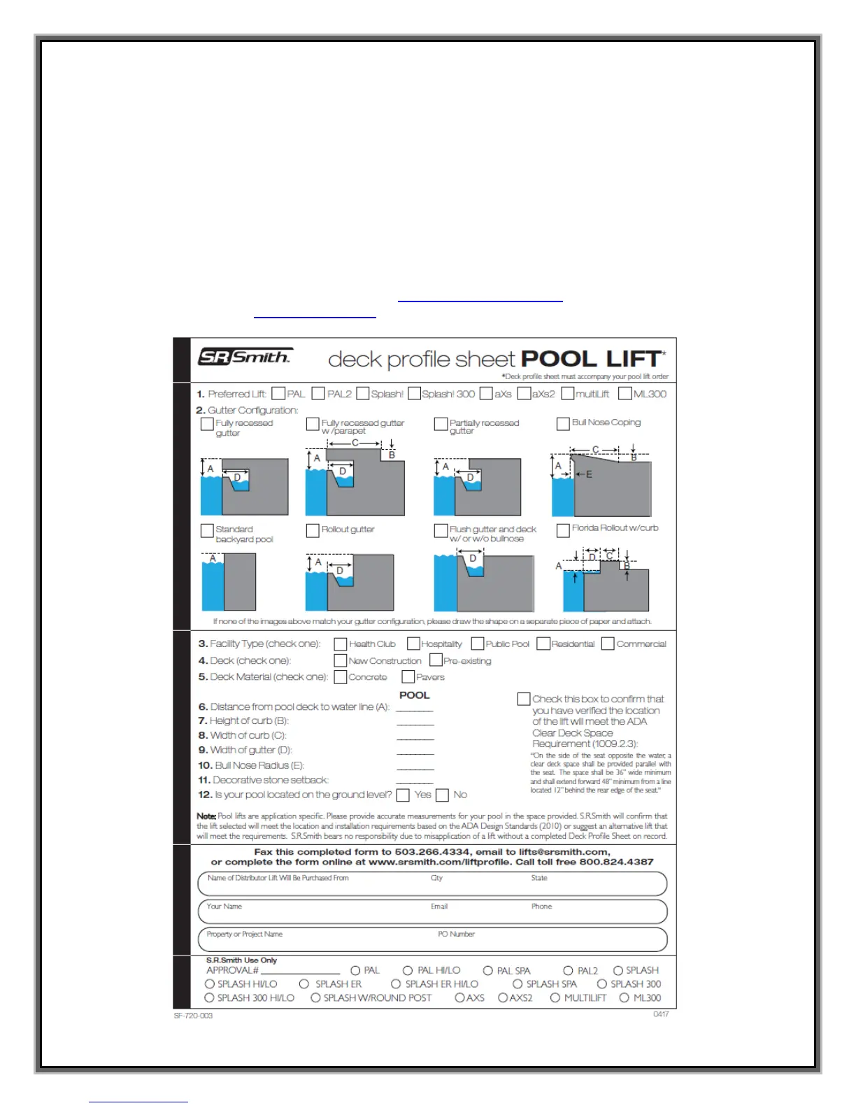 To complete the Deck Profile Sheet online, visit www.srsmith.com/liftprofile