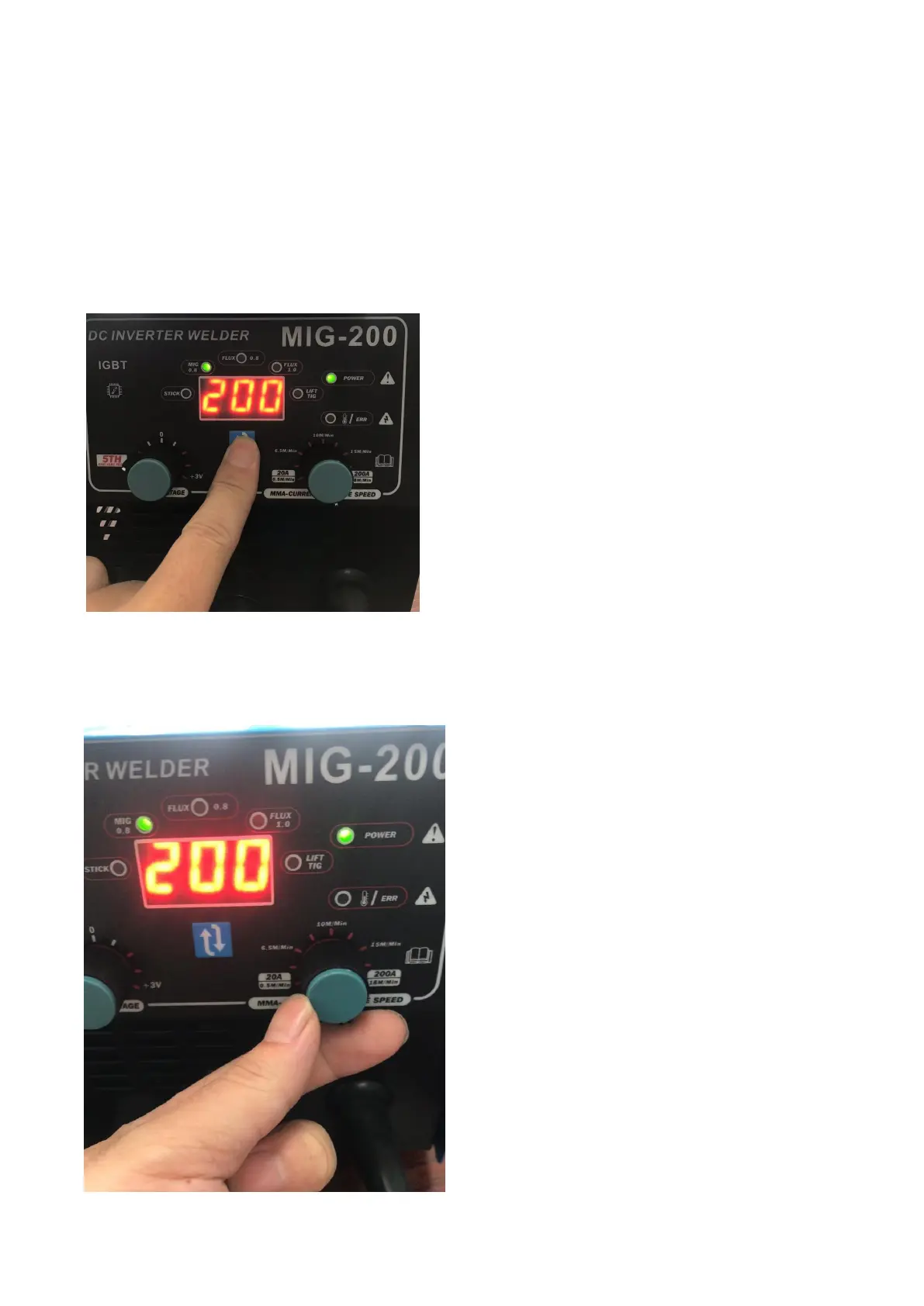 Step.1- Press the blue button below the LCD display to select “MIG 0.8”