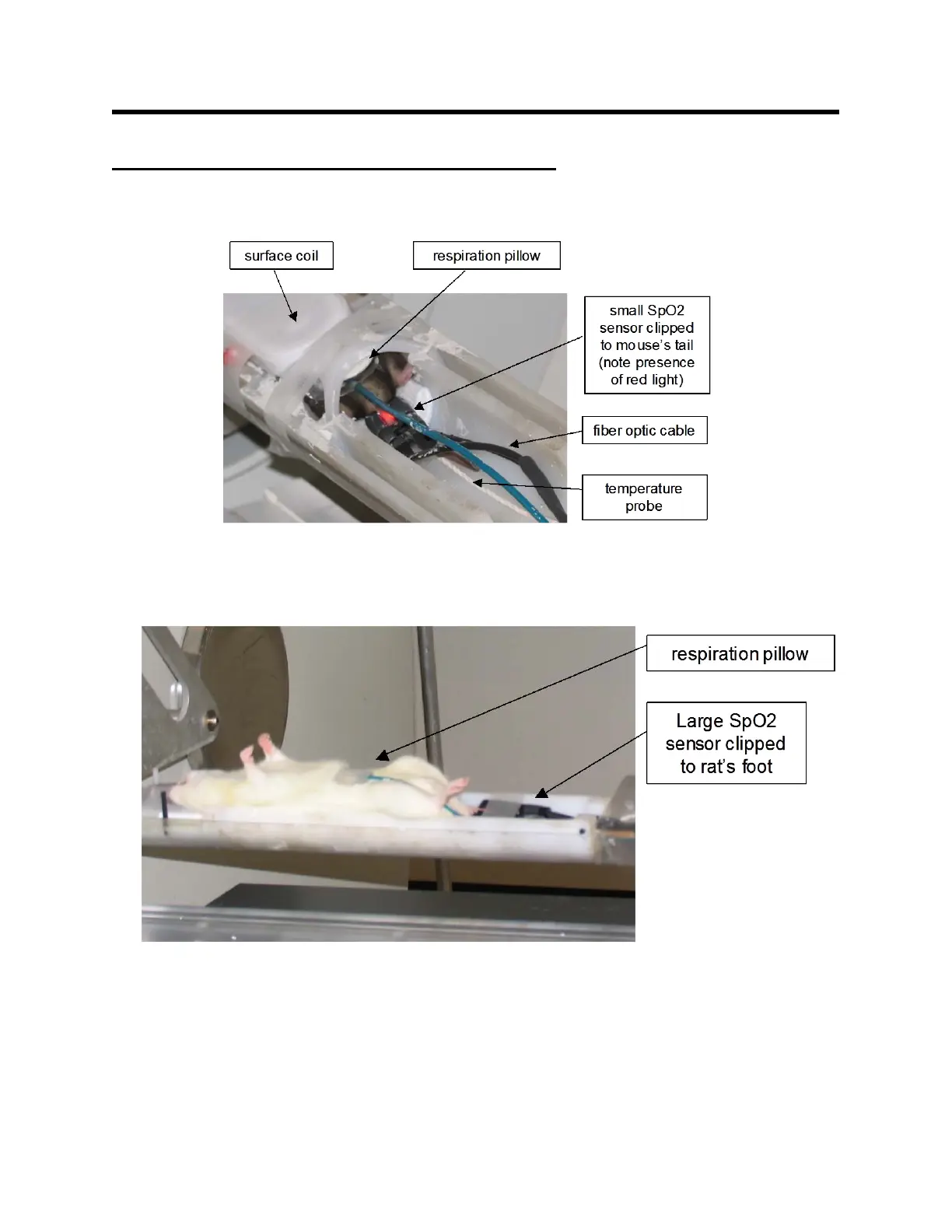 A black mouse is shown above prepared for MR with ECG, pulse ox, respiration and