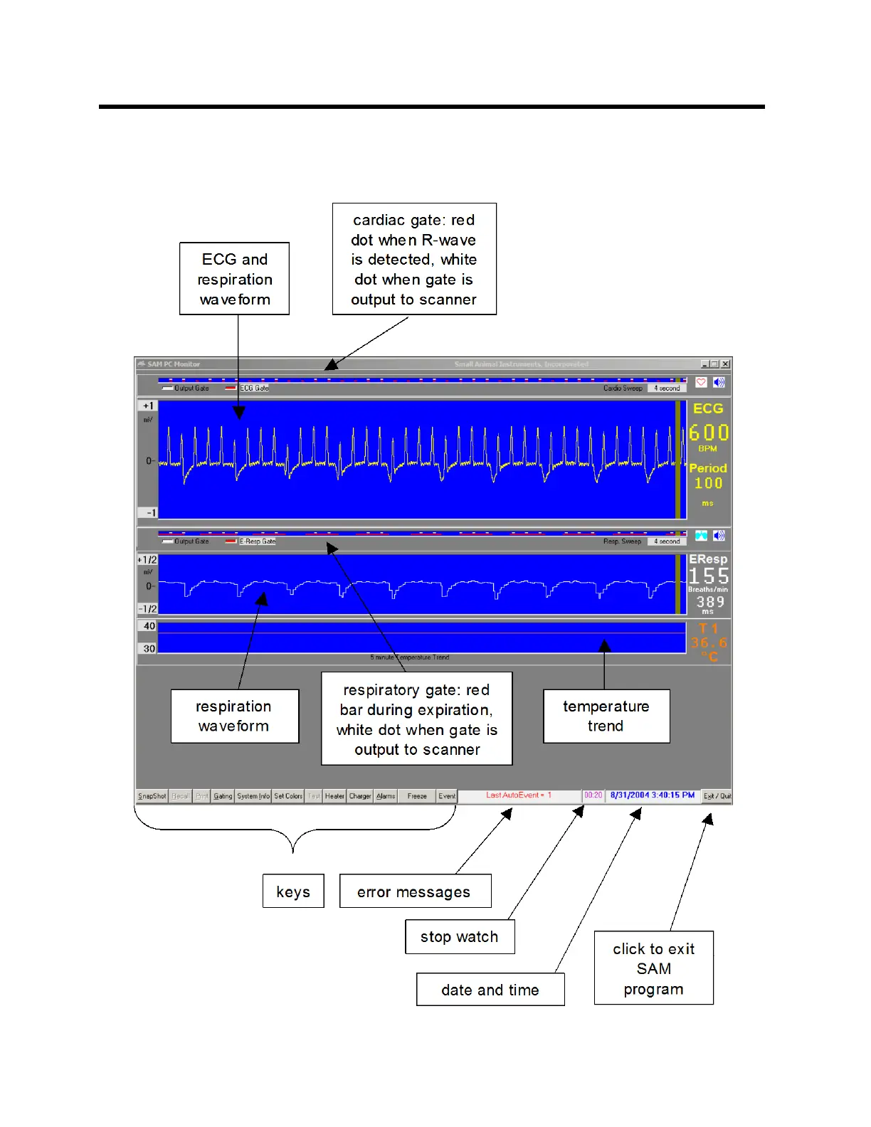 Gates and waveforms sweep from left to right. The number of red dots (R-waves)