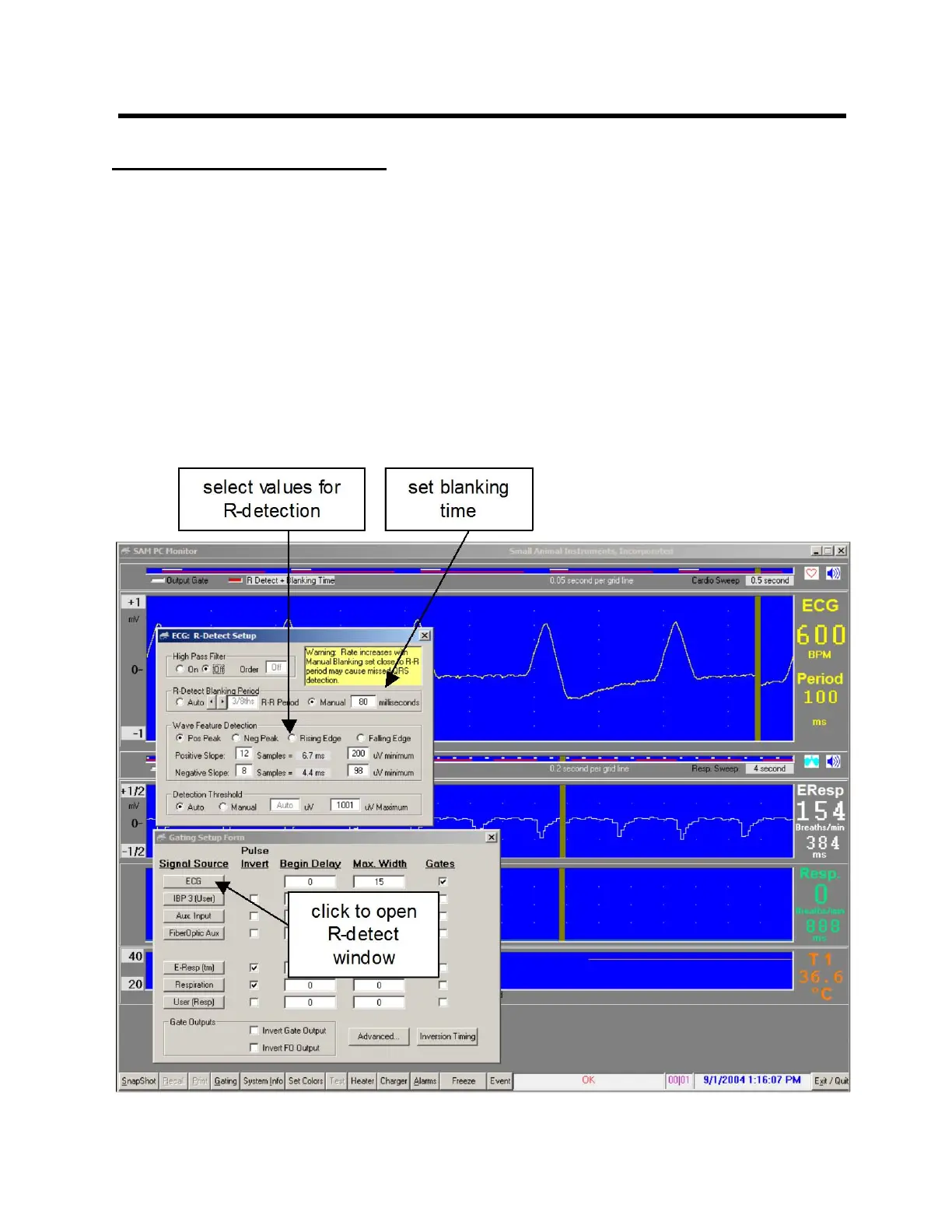 wave has been detected, the software inhibits R-wave gate generation for the blanking