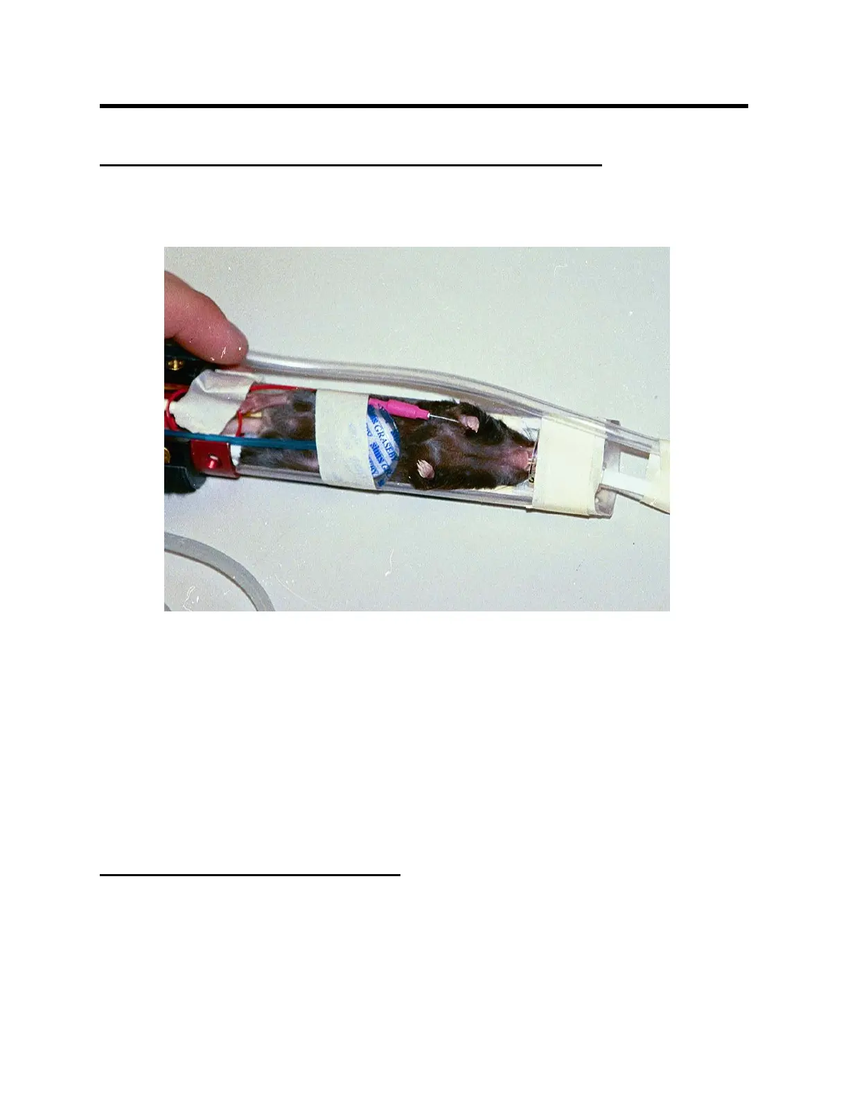 inserting it into the rectum. Secure the probe lead by taping it to the animal’s tail. The