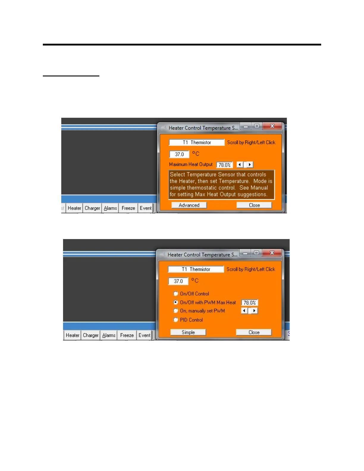 PC-SAM software provides three methods for operating the heater: on/off control, on/off