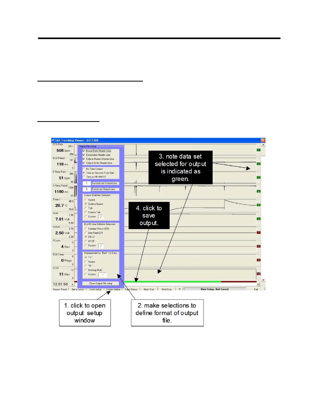 Clicking the “Mark as Last Record for Output” key defines the trends which will be