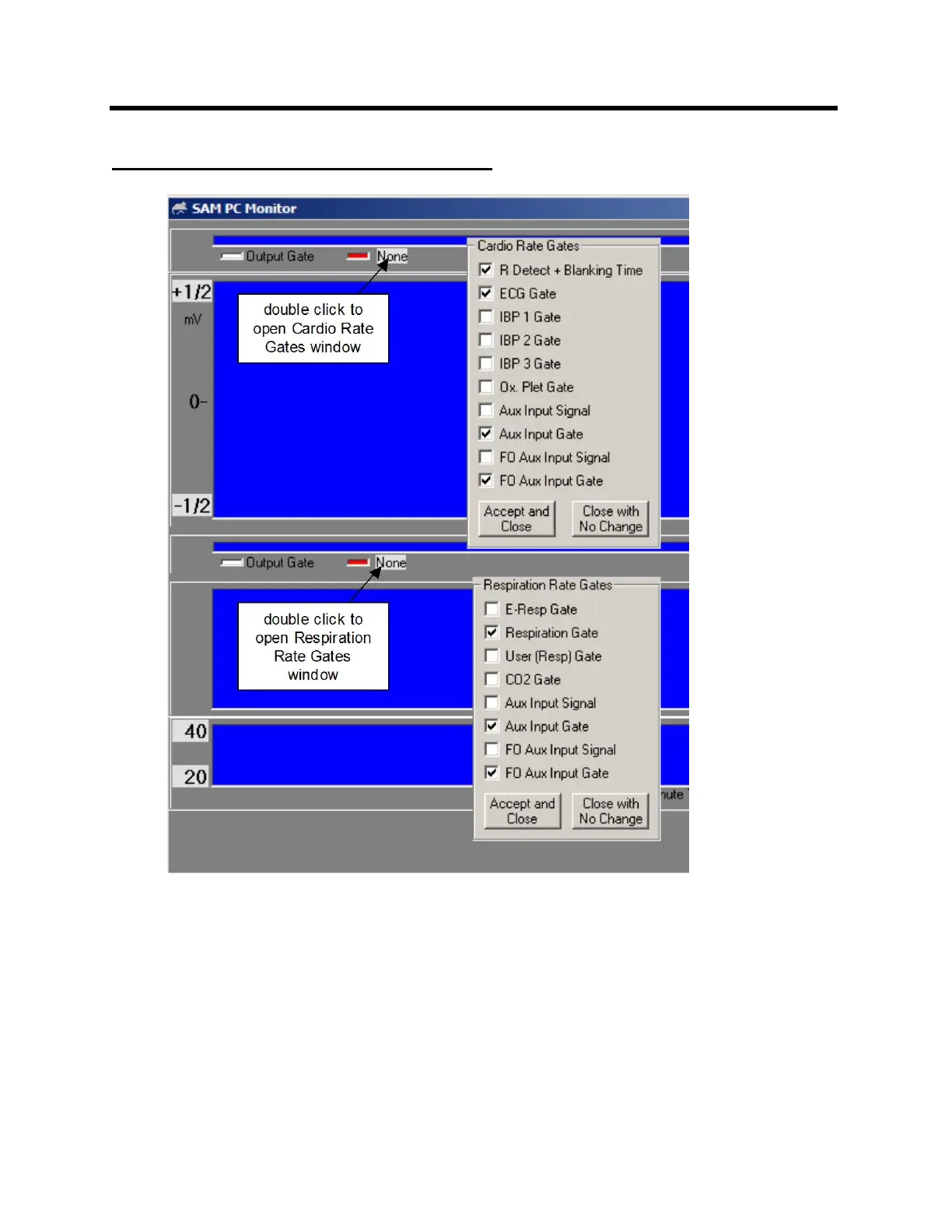 rate gate or the output gate by clicking on the colored box to the left of the cardio rate