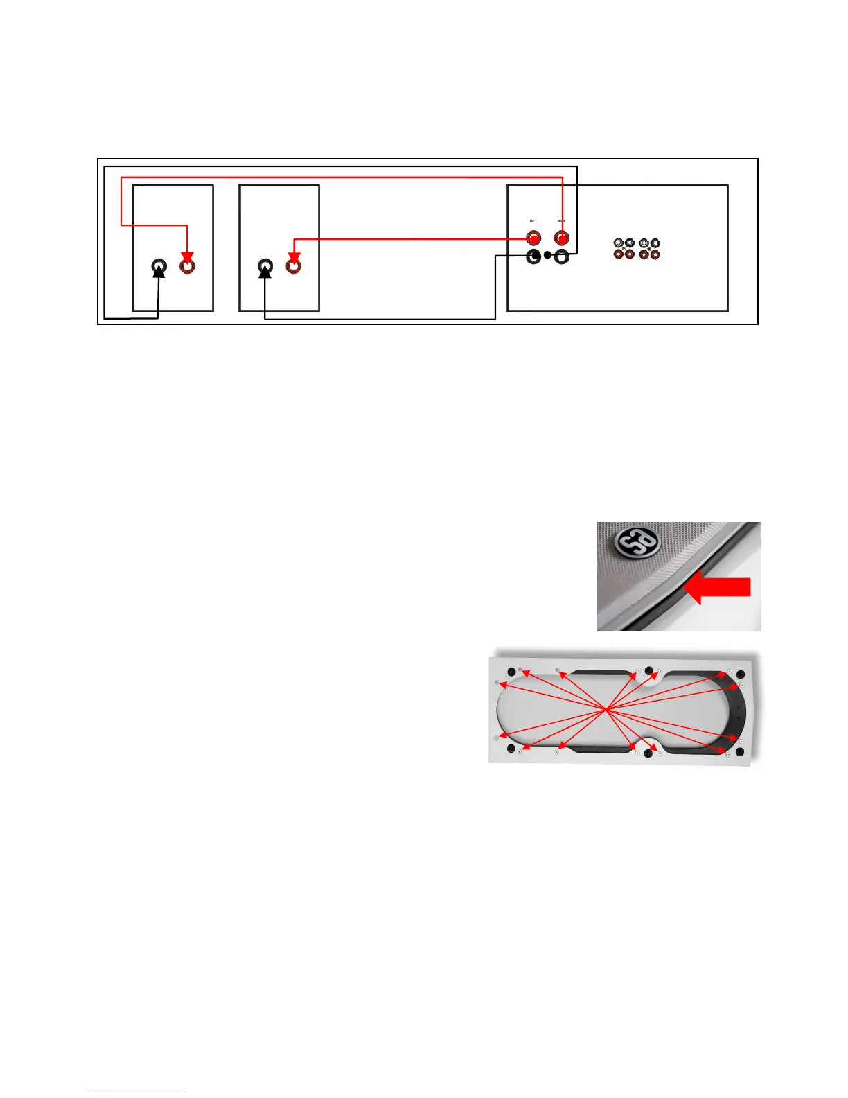 cables attached to plus (+) or minus (-) on the amplifier/receiver, must also be attached to plus (+) or minus (-) on the speakers. On SA