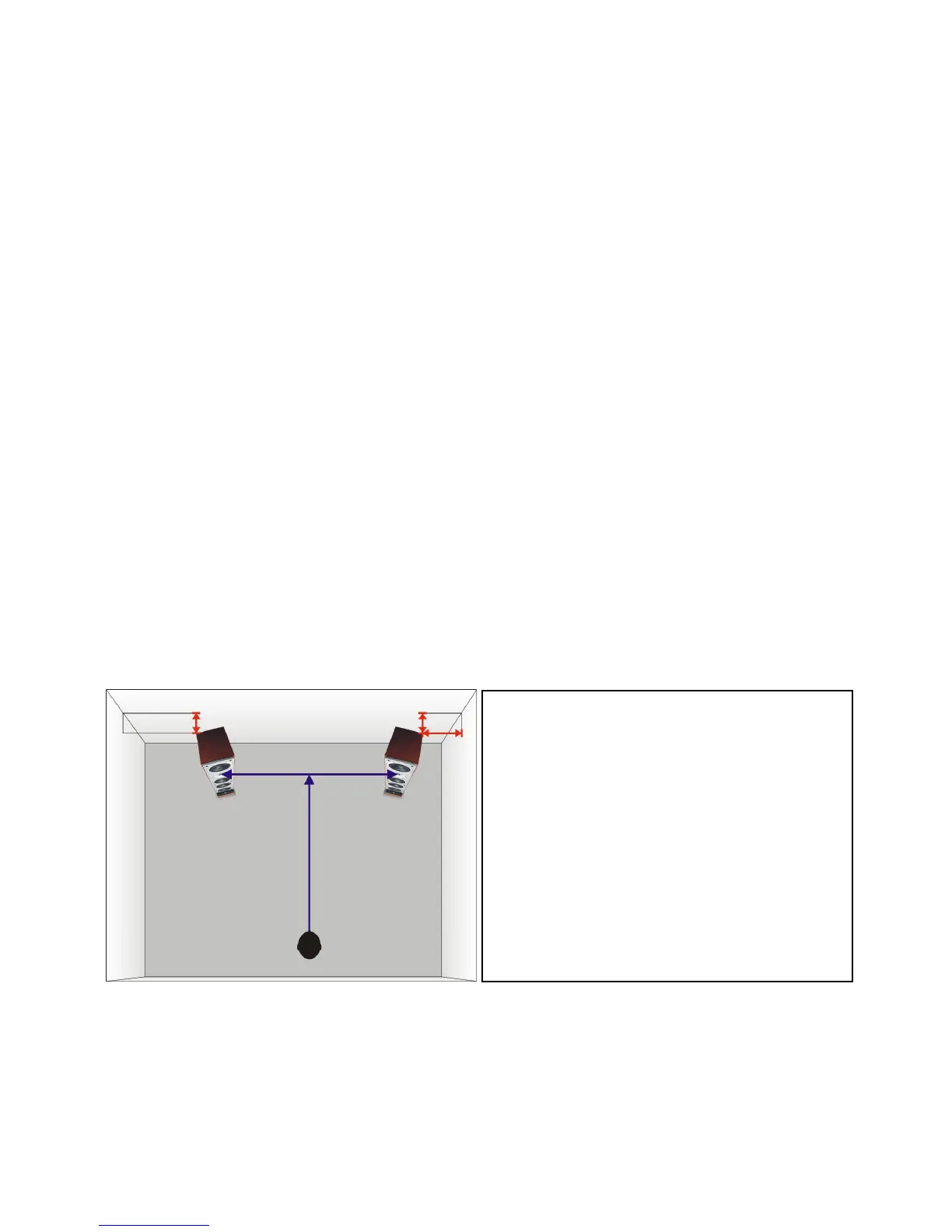 væggen på omkring 30 – 50 cm. Alt efter stuens akustik og egne ønsker om gengivelse kan denne afstand øges eller mindskes.