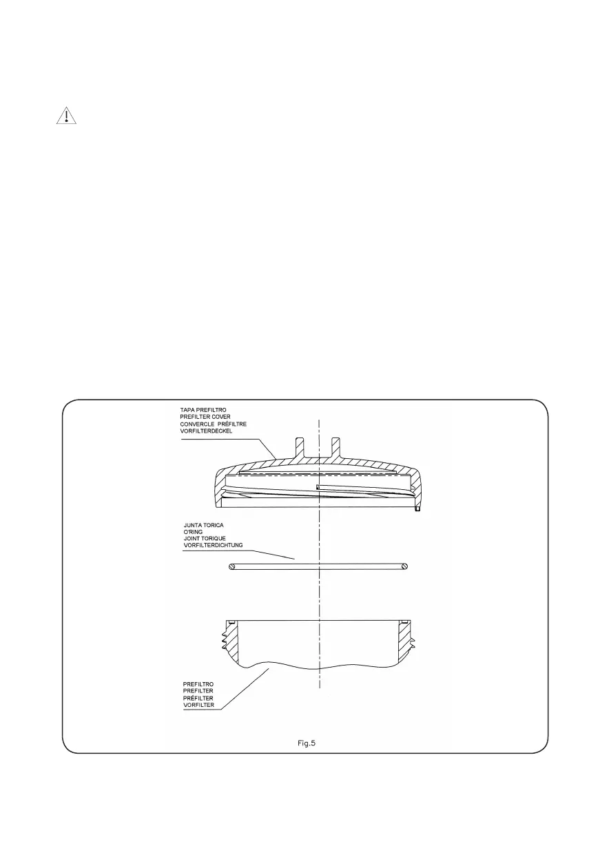 forget to replace it inside the pre-lter so as to prevent large particles from