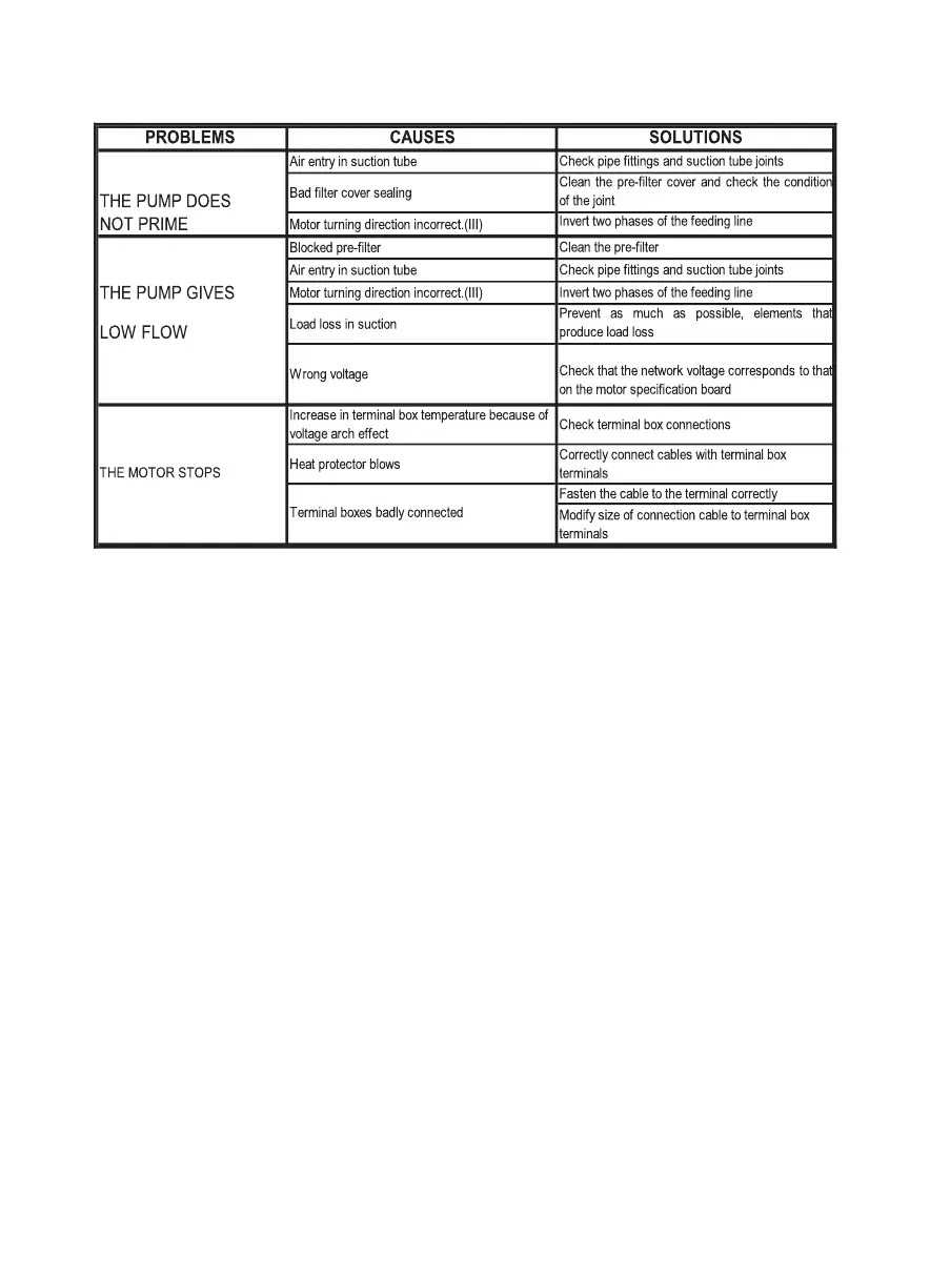 • Joints and linking hose unions for impulsion and suction tubing connections.