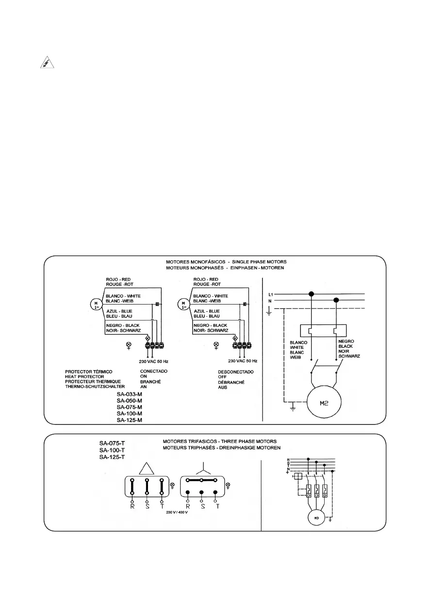 • Les pompes triphasées doivent être dotées dʼune protection contre les surcharges