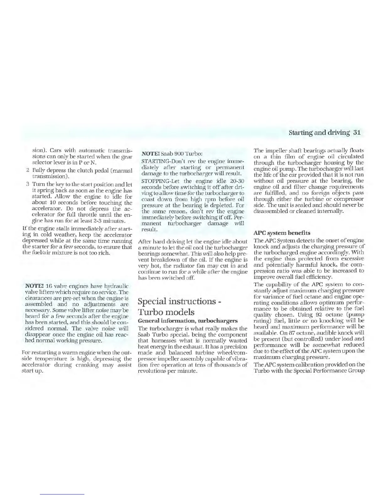 Saab 1987 900 - Turbo Model Special Instructions