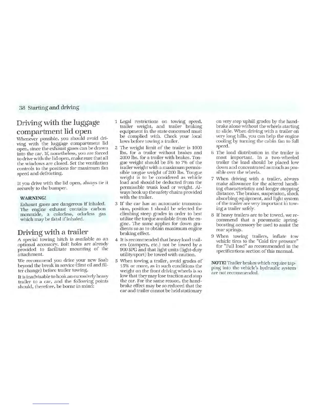 Saab 1987 900 - Towing a Trailer Safely