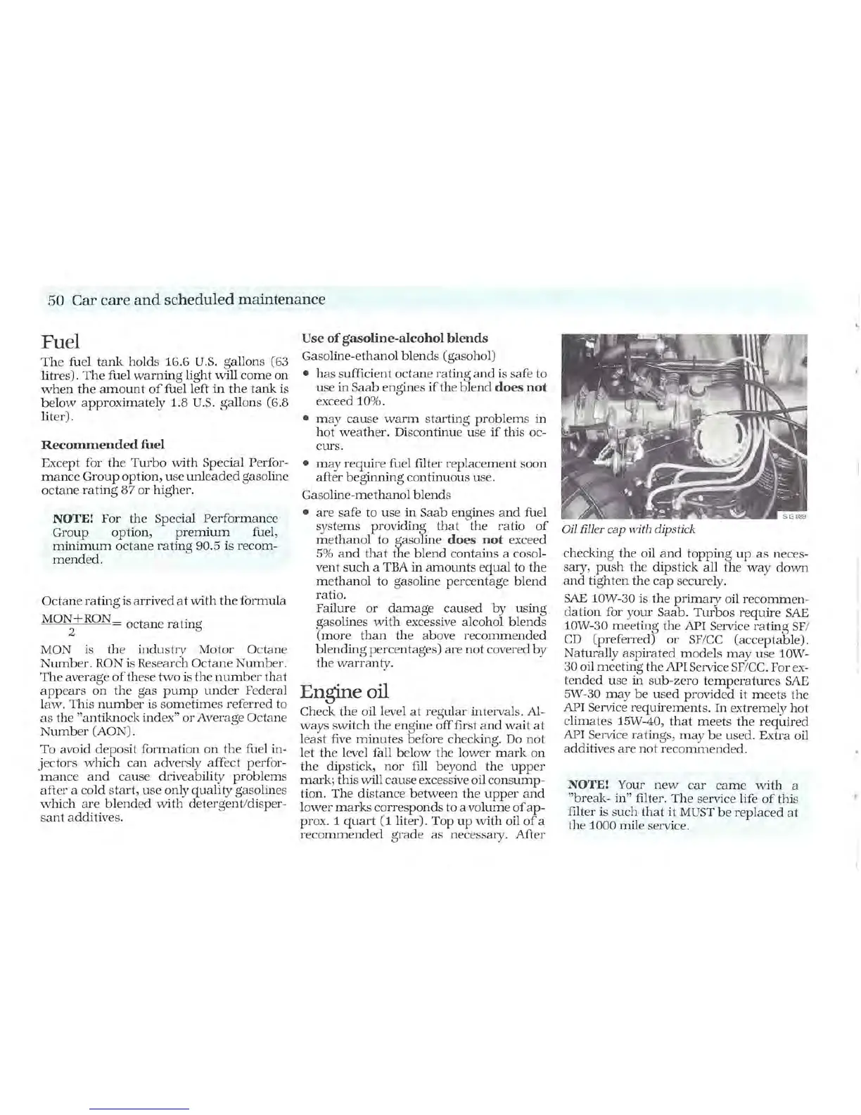 Saab 1987 900 - Fuel System Information; Engine Oil Specifications