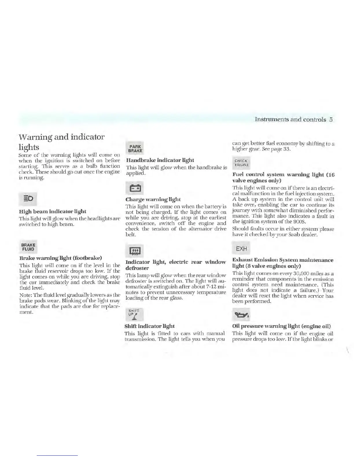 Saab 1987 900 - Warning and Indicator Lights