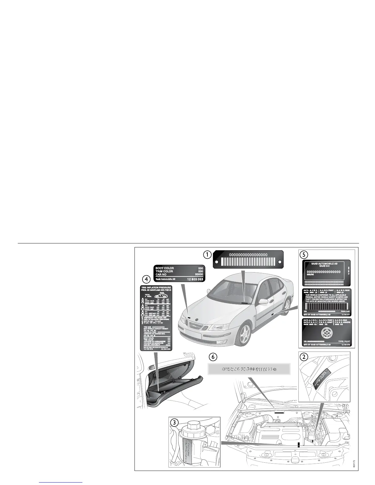 6 Chassis number (stamped on body).