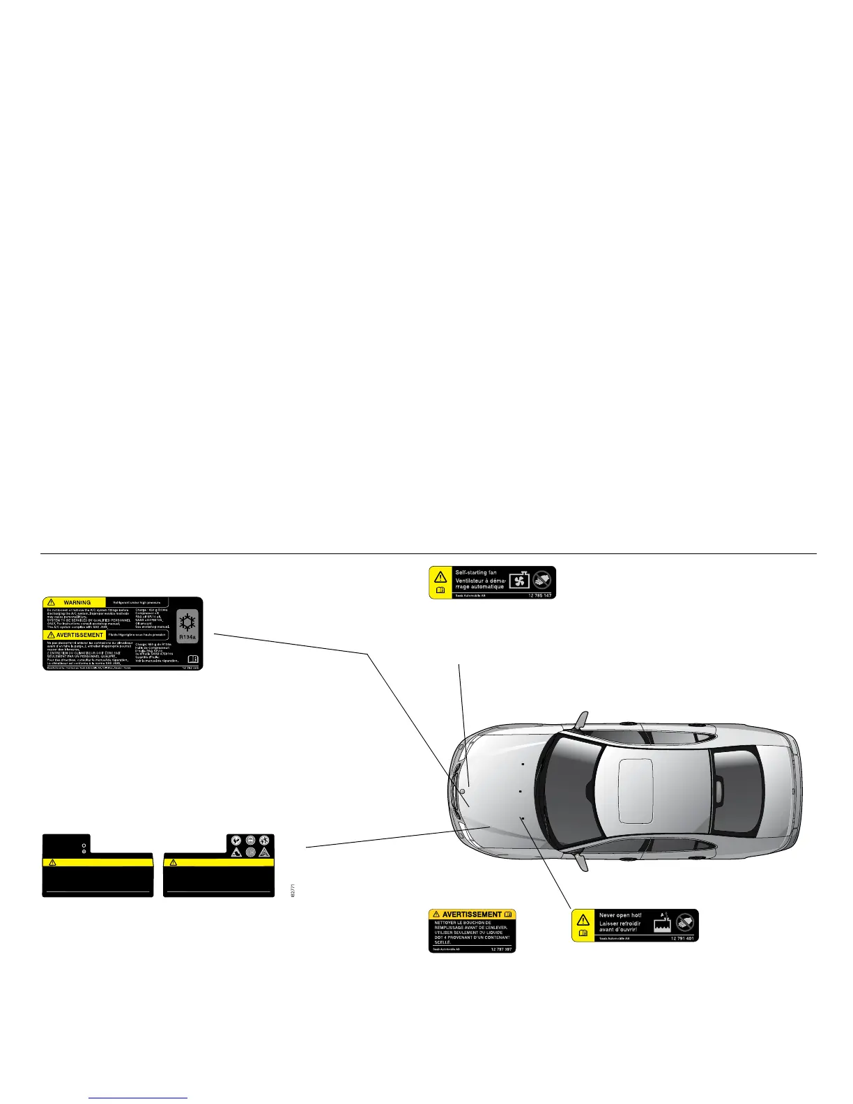 Never open when engine hot!