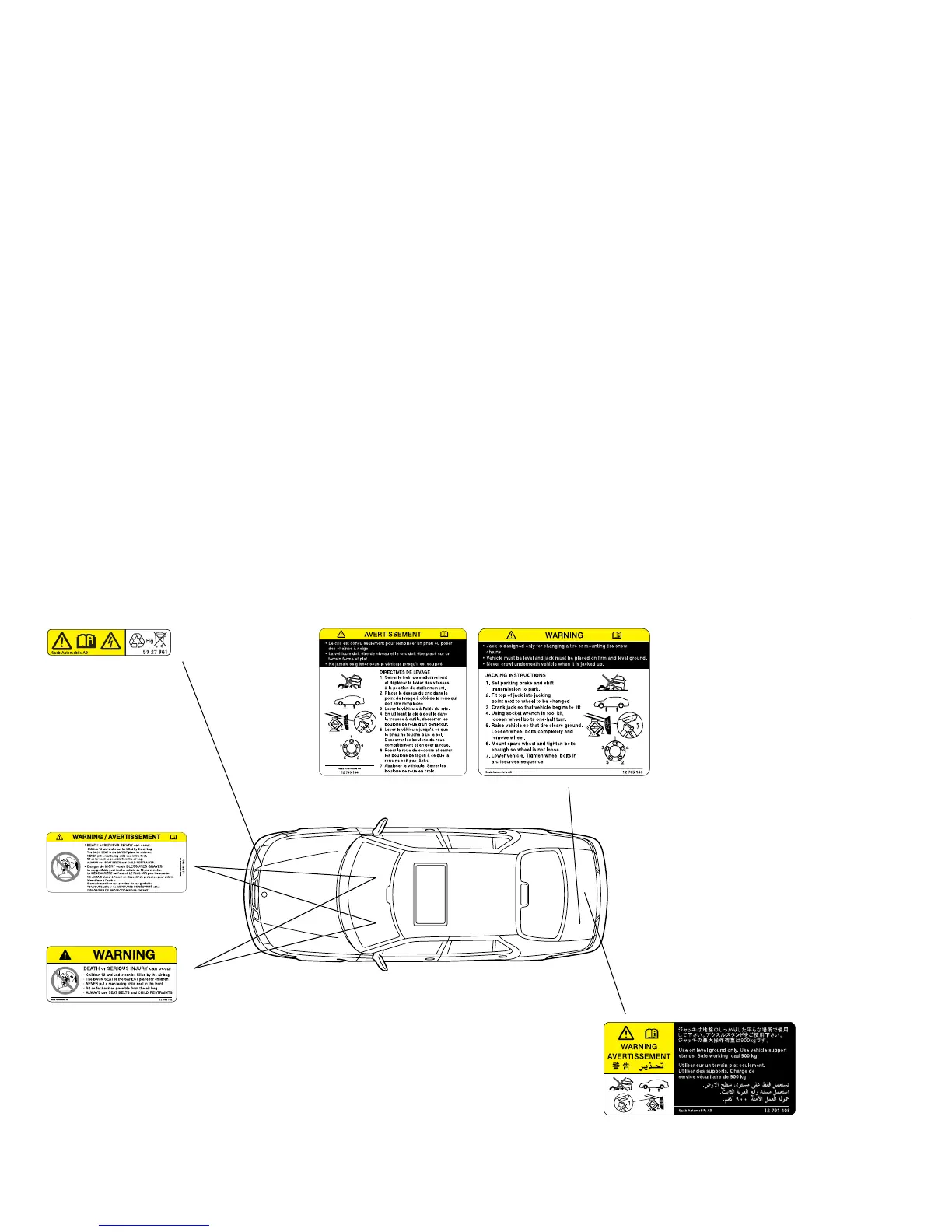 • Jack is designed only for changing a tire or