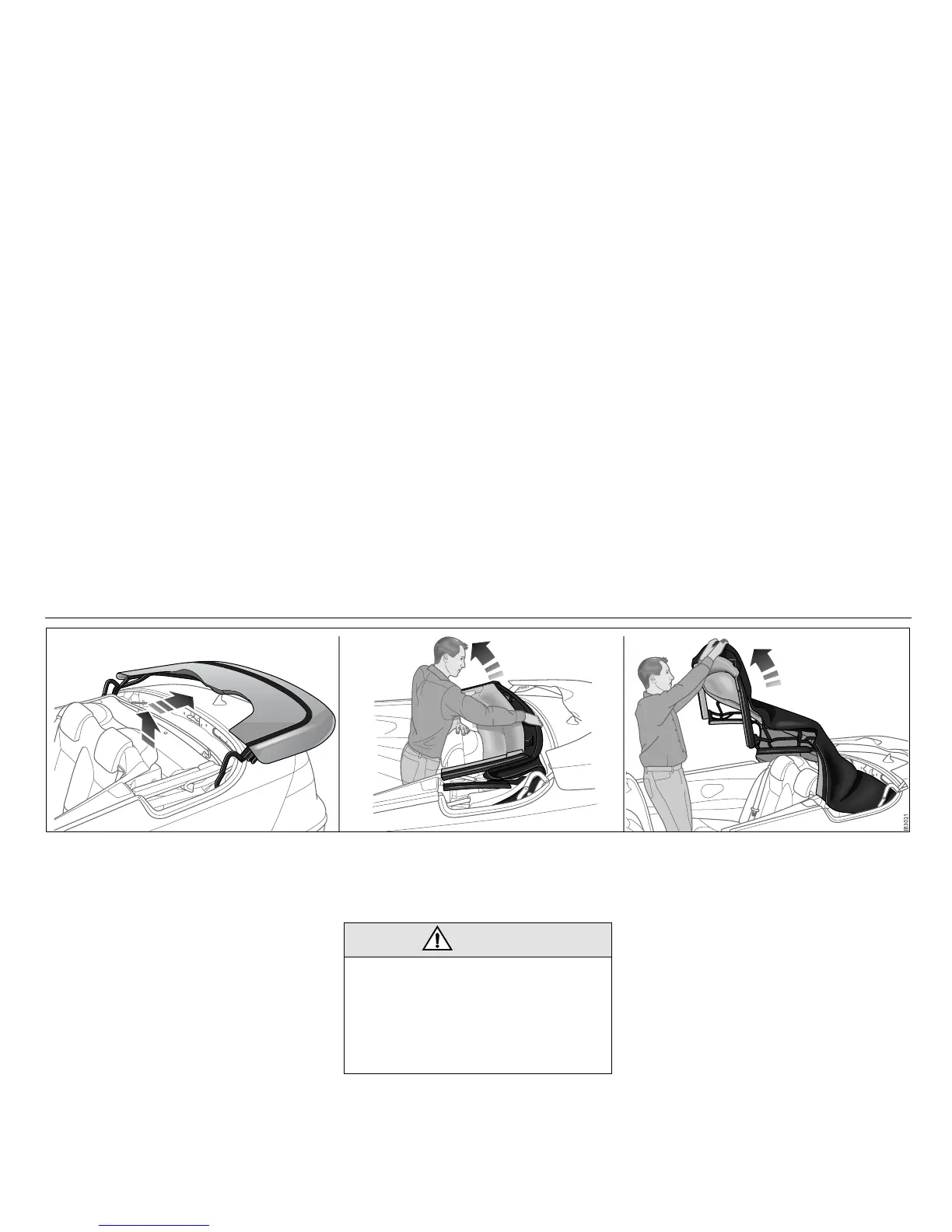 Soft top cover opened Manual closing started Soft top pulled towards windshield