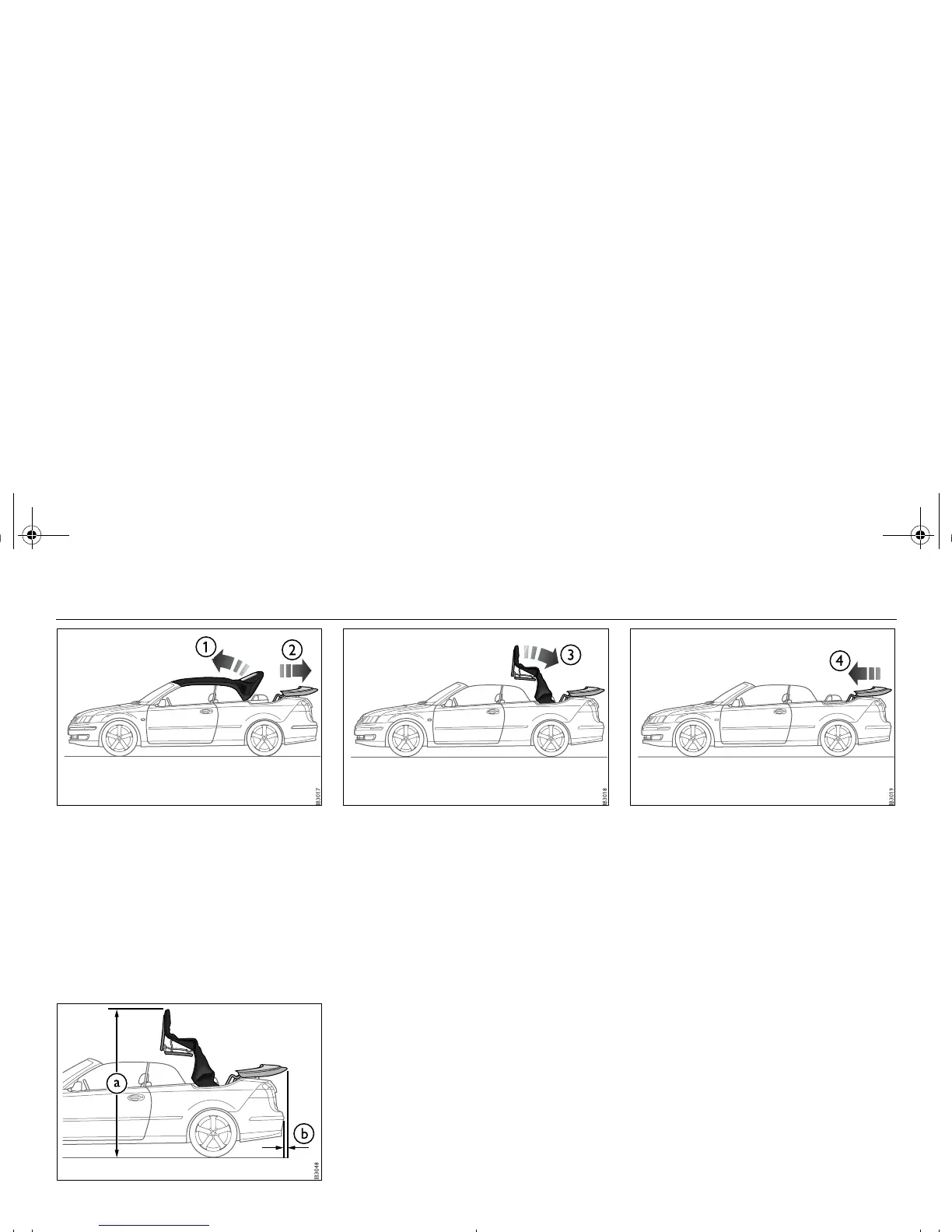 3 Soft top folded. 4 The soft top cover is closed.1 Rear window raised. Soft top storage in