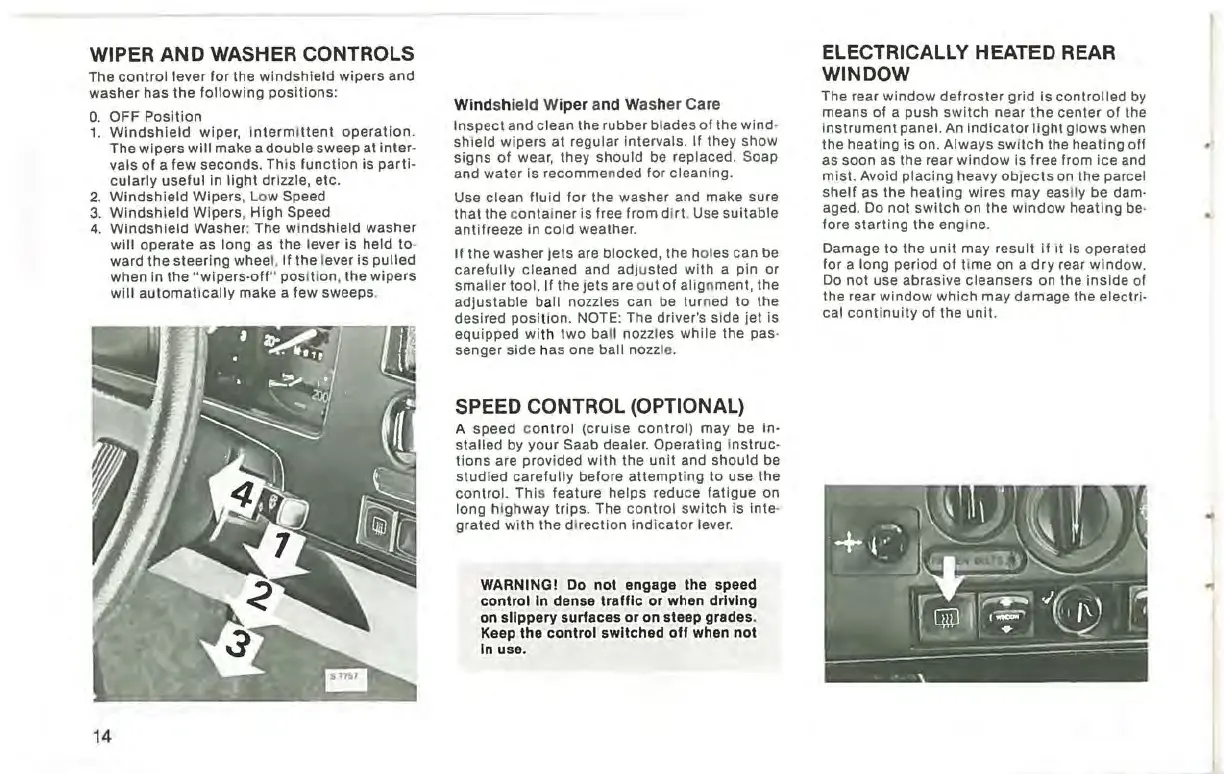 Saab 900 1983 - Wiper and Washer Controls; Speed Control (Optional); Electrically Heated Rear Window